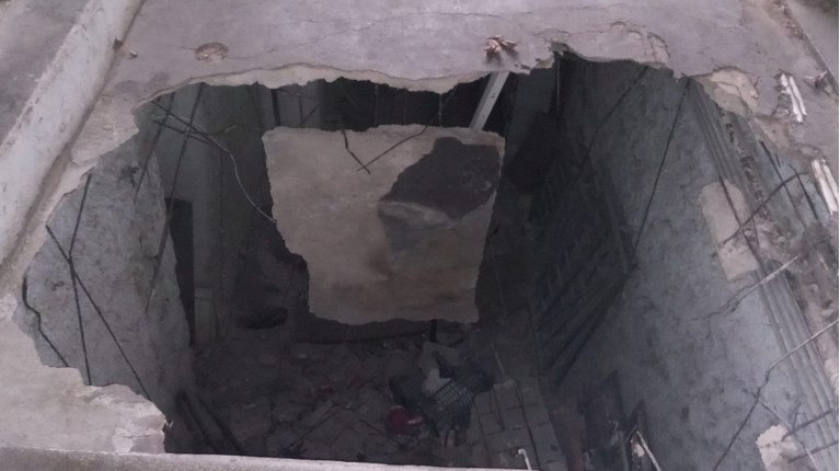 Μία τρύπα περίπου τριών μέτρων άνοιξε στο οδόστρωμα, στη στοά του Μπιτ Παζάρ στη Θεσσαλονίκη.