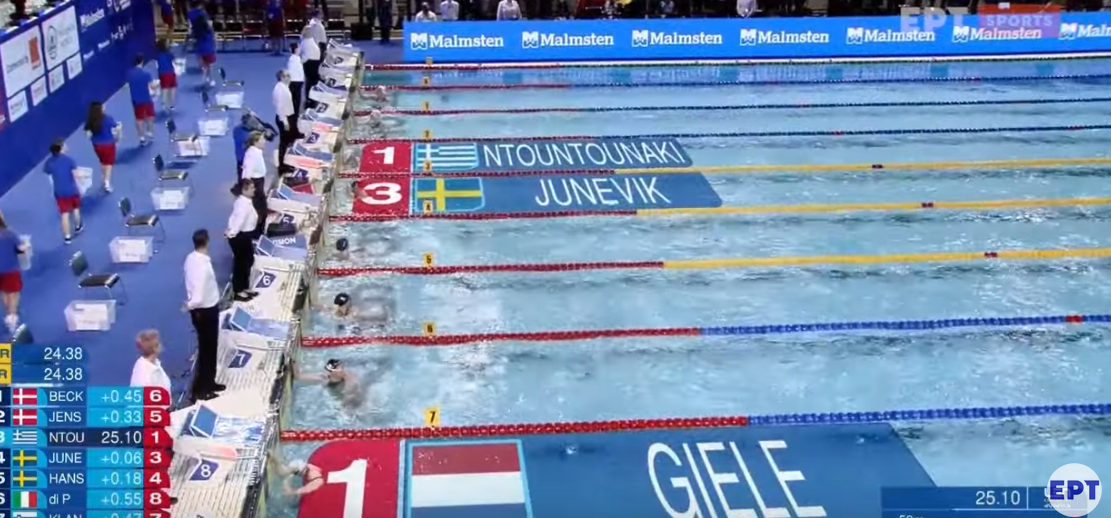 Η Ελληνίδα πρωταθλήτρια Άννα Ντουντουνάκη αναδείχθηκε πρώτη στον τελικό των 50 μέτρων πεταλούδα του ευρωπαϊκού πρωταθλήματος 25άρας πισίνας στο Οτοπένι.