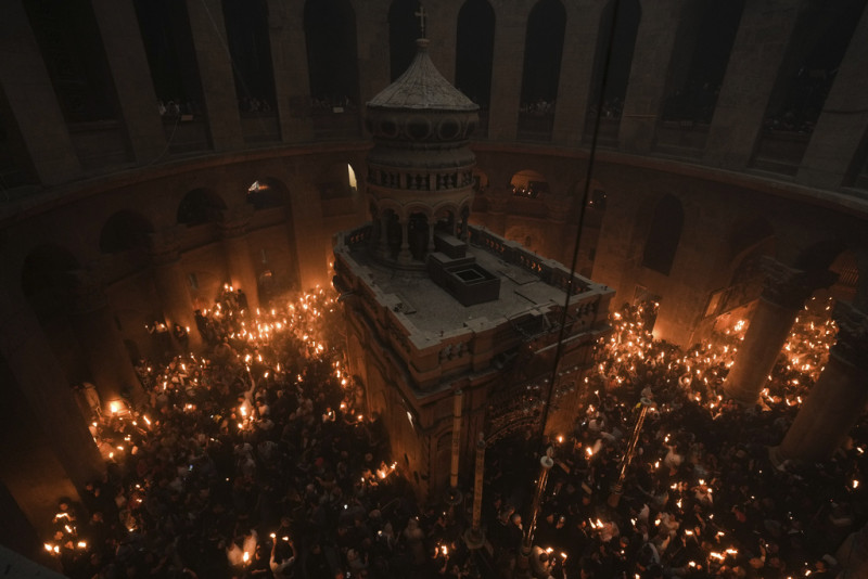 Το μεσημέρι με λαμπρότητα και κατάνυξη τελέστηκε και εφέτος η Τελετή Αφής του Αγίου Φωτός από τον Πατριάρχη Ιερουσολύμων Θεόφιλο, στον Πανίερο Ναό της Αναστάσεως. Ειδικότερα, λίγο πριν από τις 15:00, ο Πατριάρχης Ιεροσολύμων Θεόφιλος Γ’ εξήλθε του Παναγίου Τάφου και μεταλαμπάδευσε το Άγιο Φως στους προσκυνητές που παρίσταντο για το «Δεύτε λάβετε Φως», καθώς και το μήνυμα της Ανάστασης στην ανθρωπότητα, υπό τον χαρμόσυνο ήχο από τις καμπάνες του Ναού της Αναστάσεως.