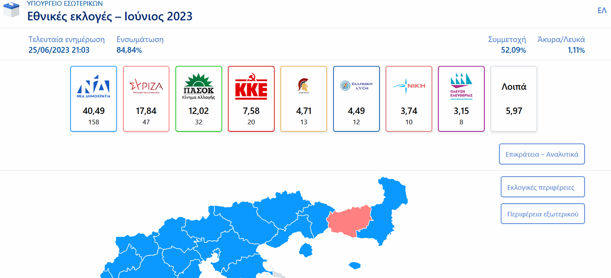Τα αποτελέσματα κατά το Υπουργείο Εσωτερικών