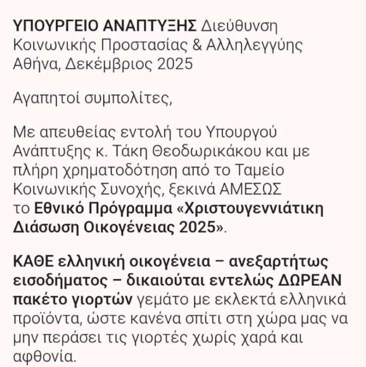 Το μήνυμα υπόσχεται «δωρεάν πακέτο γιορτών».