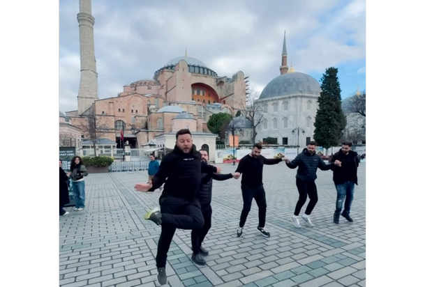 Οι έξι άνδρες χόρεψαν συρτό έξω από την Αγία Σοφία στην Κωνσταντινούπολη.
