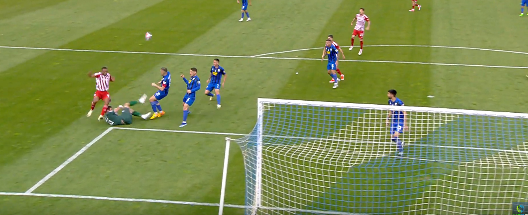 Στο 26′ ο Μαυροβούνιος επιθετικός κέρδισε πέναλτι από τον Τσιλούλη και ο Ελ Κααμπί από τα έντεκα βήματα διπλασίασε τα τέρματα των Πειραιωτών.