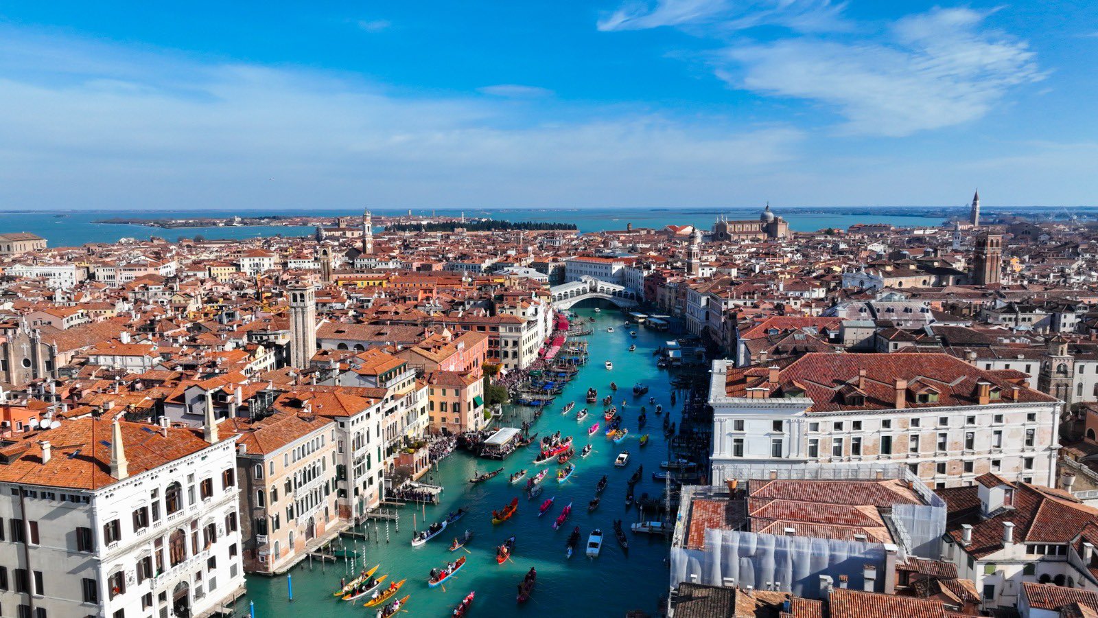 Un’esplosione di colori ha invaso oggi il Canal Grande con il passaggio del Corteo acqueo che rievoca la tradizione remiera veneziana. 🎉