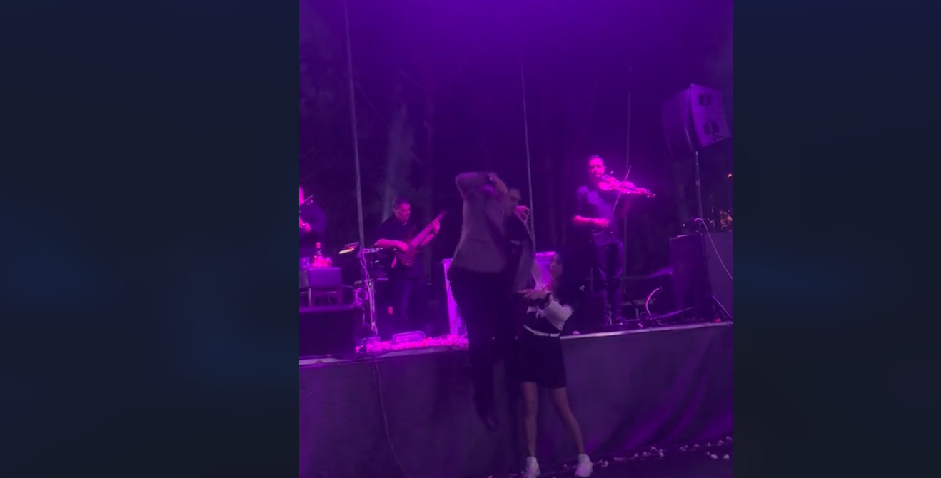Συγκεκριμένα, σε βίντεο που κάνει τον γύρο του διαδικτύο, ο καλλιτέχνης, ενώ τραγουδάει κατεβαίνει από την σκηνή με την βοήθεια μιας κοπέλας.