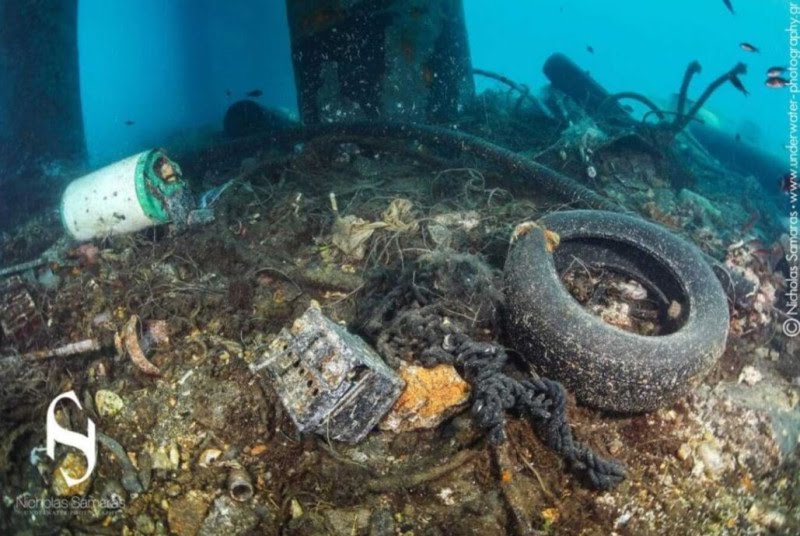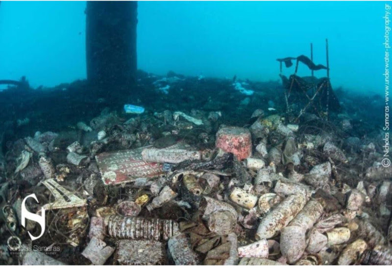 Οι φωτογραφίες αποτυπώνουν το υποθαλάσσιο έγκλημα που συντελείται στον βυθό του φυσικού μικρού λιμανιού με κατεύθυνση εισόδου από τον νότο προς το βορρά.
