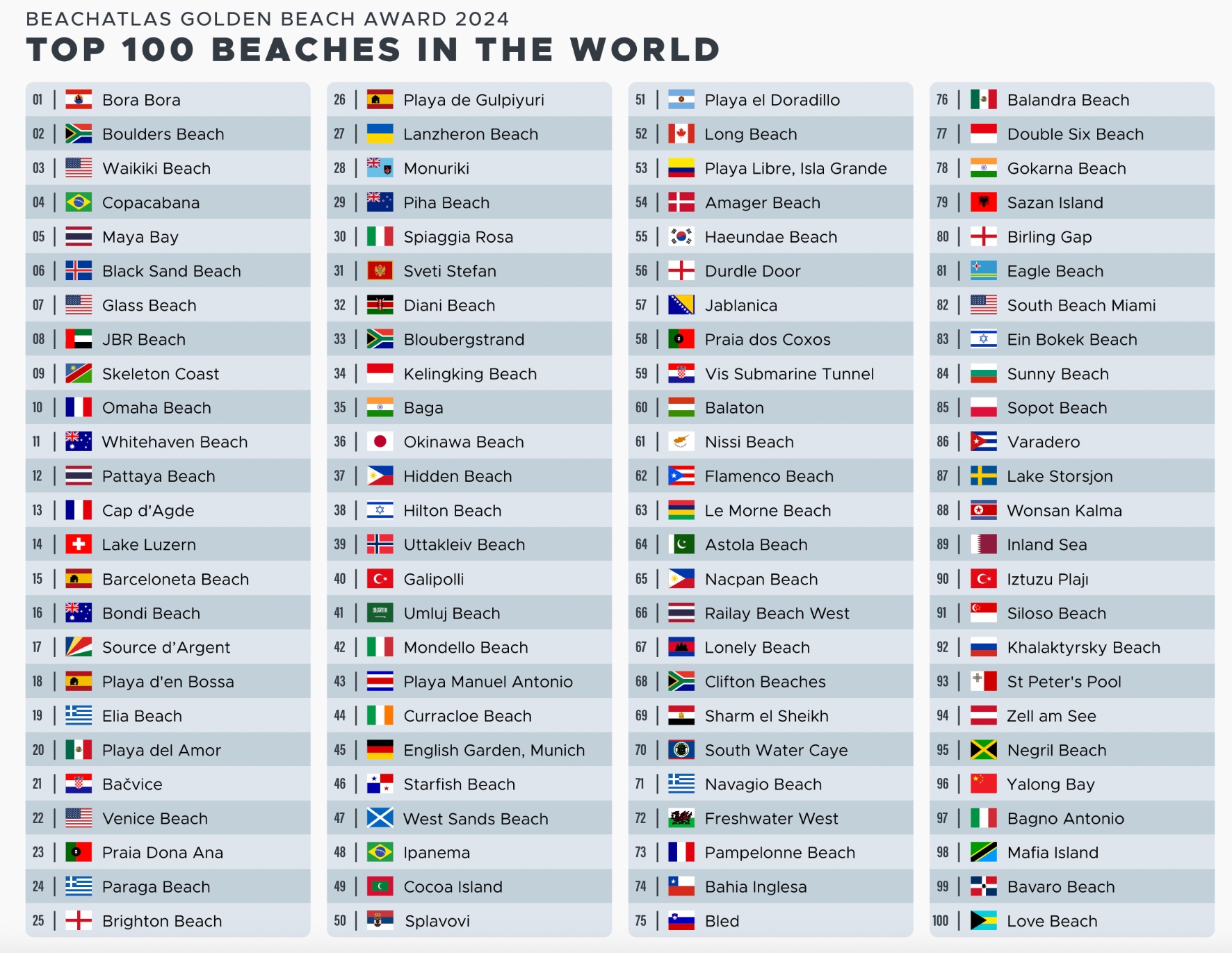 Το γνωστό περιοδικό BeachAtlas έφτιαξε τη λίστα με τις 100 καλύτερες παραλίες στον κόσμο για το 2024.