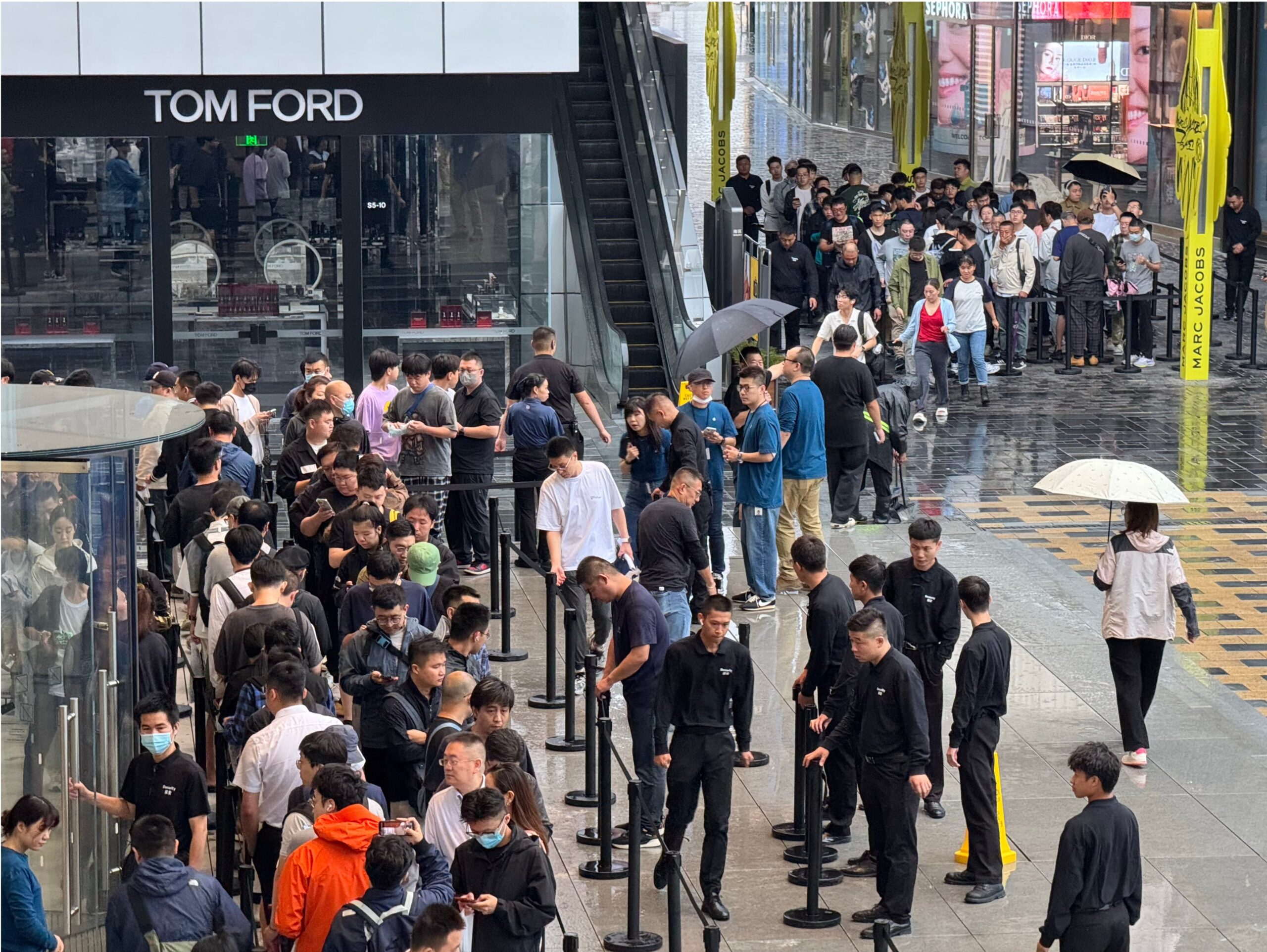 A video circulating on social media shows Chinese consumers lining up at an Apple $AAPL store to pick up their goods despite torrential rain in Shanghai.
