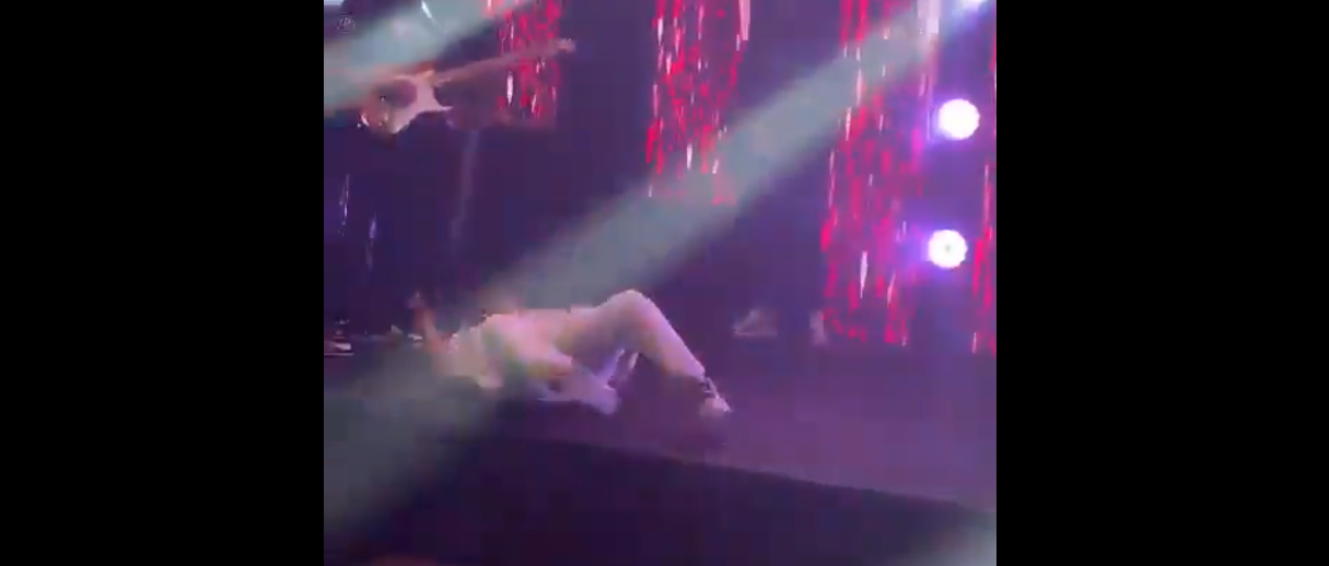 Ξαφνικά έχασε την ισορροπία του και έπεσε στη σκηνή μπροστά από την μπάντα του.